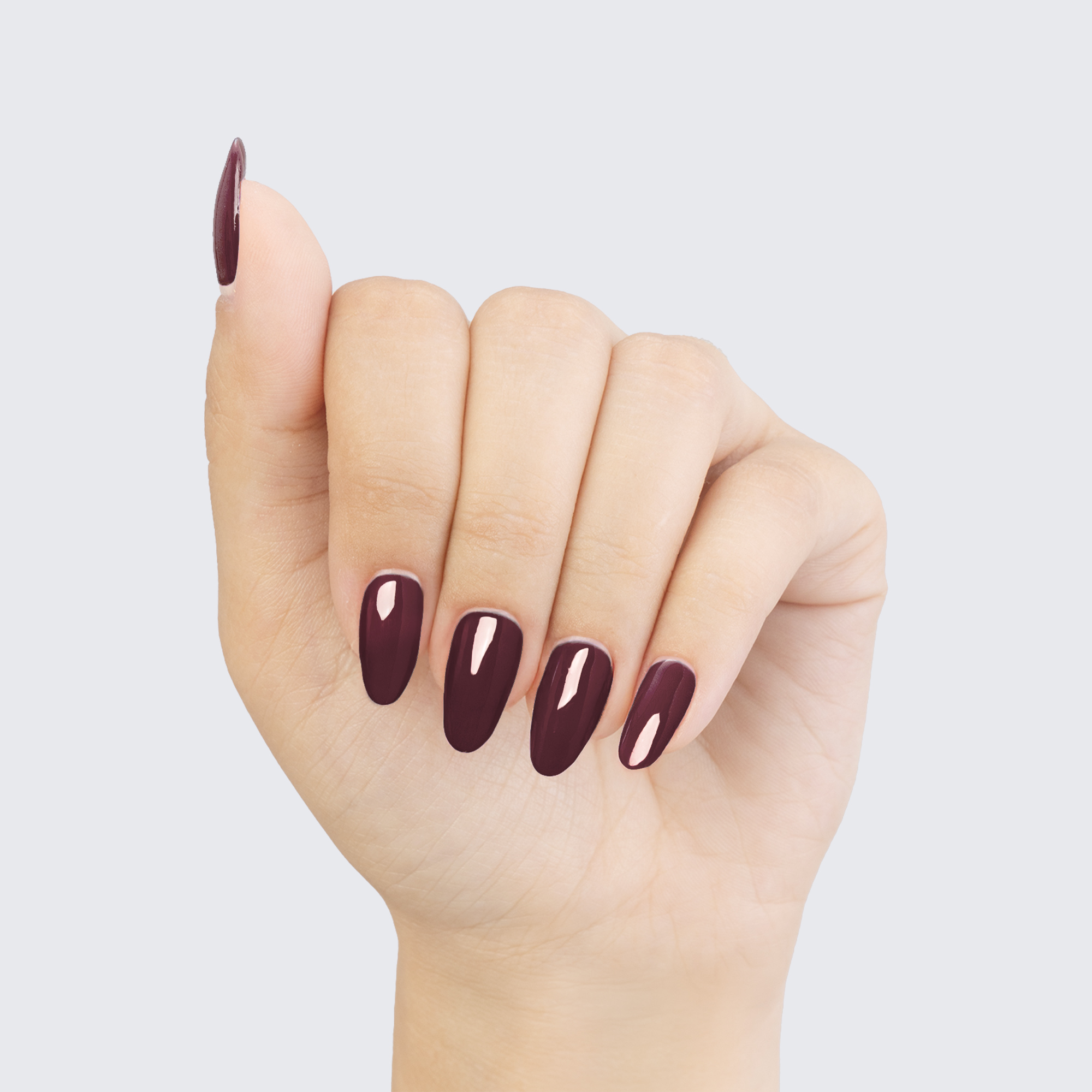 Burgundy. Very dark. Opaque. Cool undertone.